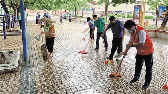 黄江城管分局与宝山社区相关工作人员一同进行清扫保洁 |