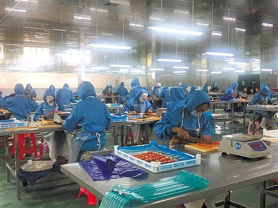 老乡家园旁的靖西市保诚食品有限公司里,很多居民在此上班 |
