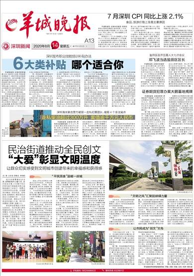 深圳新闻 1957年10月1日创刊 2020年8月14日 星期五 庚子年六月廿五 区域新闻全媒体编辑部主编/责编 文俏 / 美编 温亮 / 校对 黄文波 报料热