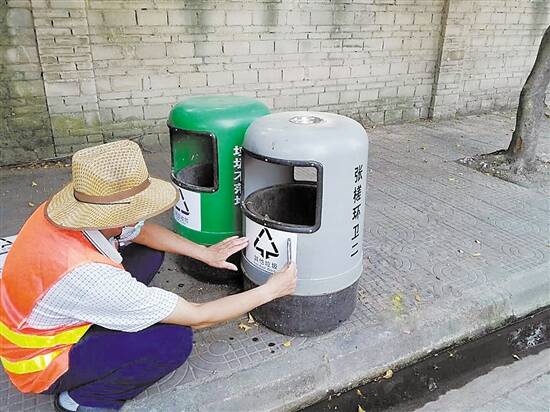 据悉,自今年6月开始,张槎街道综合行政执法办公室牵头组织张槎街道内的26个公共机构率先完成垃圾分类工作。通过张贴宣传海报,设置垃圾分类容器,召开垃圾分类工作培训大会等措施,将“垃圾分类”带进了各公共机构的办公场所。目前,垃圾分类已在张槎街道图书馆、张槎街道组织工作办公室、张槎街道机关事务所等26个公共机构进入了常态化。 此外,张槎街道已选取“清水桥片区”为生活垃圾分类示范片区,首先在示范片区内的两个小区“公安小区(287户)”及“弼唐公寓(423户)”开展生活垃圾分类工作。目前已在公安小区内摆放“其他垃圾”和“厨余垃圾”两类新的垃圾分类容器,张贴垃圾分类宣传海报,积极营造生活垃圾分类氛围。 为进一步落实城市生活垃圾分类工作实施,加强街道公共场所生活垃圾分类设施规范管理,方便广大市民群众准确分类投放,7月起,张槎城管部门组织各标段公司对公共场所现有的生活垃圾分类容器“穿上新衣”——更换新标志。对原垃圾容器上的“可回收垃圾”、“不可回收垃圾”等不规范的名称,按规定更改为“可回收物”(蓝色)及“其他垃圾”(黑色)。目前,张槎街道主要干道上全部712个果皮箱均已更换标志。