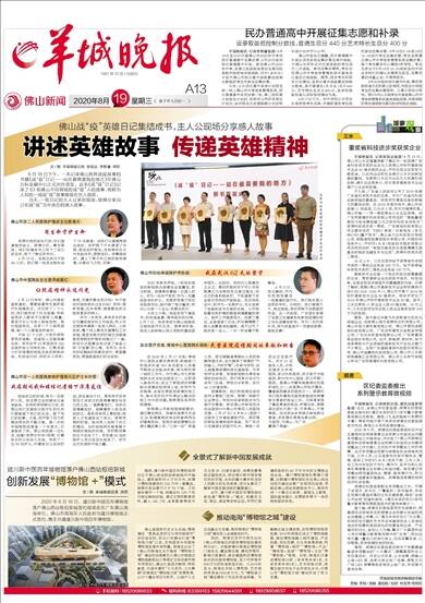 文/图 羊城晚报记者 张韬远 李斯睿 周哲 8月18日下午,一本记录佛山各界战疫故事的书籍《战“疫”日记——站在最需要我的地方》在佛山万科金融中心正式对外首发。这本《战“疫”