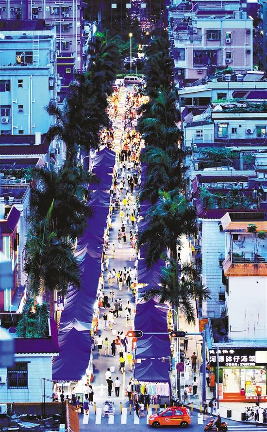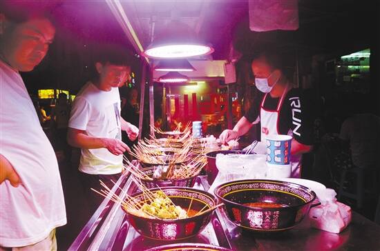 “人间烟火气,最抚凡人心。”周末傍晚,暴雨瓢泼,宝安区西乡街道盐田夜市一如既往地喧嚣起来,一家家档位连起如柱的灯光,人潮涌动。灯光下,食物更显色泽诱人,味道飘香,氤氲弥漫。在深圳这样的国际化都市,这条位于宝安区盐田社区的金海路与盐田路交界处的夜市已经悄然存在了14年之久。这里300多米长的街道,白天正常通车,下午4点开始封路,商贩们支起摊位,到晚上11点半收摊,第二天起来,道路整洁如新。川流不息的街道与风味十足的夜市,轮番为城市奏响生活的变奏乐章。 这条“昼伏夜出”的街道虽然不长,却承载一些人全家生活的依靠,让一些人通过辛勤工作实现了安家乐业,也成了周围居民生活不可或缺的需要。如此大隐隐于市的夜市街,如何收放自如地在闹市旺了14年?它为促进“夜间经济”、稳定就业和丰富市民的生活起着积极的作用。在没有放开“摆摊设点”的深圳,这条街为何一枝独秀成为一抹“风景”?又为何长盛不衰?街市管理方是如何管理使之与周边“和谐共存”的?羊城晚报带你一探究竟。 [现场] 人声鼎沸 喧闹温馨 “老板,炒一份田螺!”晚饭时间,一位抱着小姑娘的阿姨在盐田夜市街的一个摊位前喊了一嗓子。老板满脸笑容回应,“好嘞,少辣是吧?”“是,等会来拿。”说完去旁边摊位转了。阿姨是摊位的老主顾了,老板说,“大家经常打照面,要什么口味都熟悉了”,说完就拿起准备好的食材掌勺颠起锅来,空气中顿时香气四溢。另一旁,阿姨买了一份锅盔,等档主麻利做好,塞到小姑娘手中,两人喜笑颜开。 八月里,麻辣小龙虾正当季。每个卖小龙虾的摊点,都能见到食客们聚在一起谈天说地大快朵颐;花甲粉和酱爆猪手这样的地方美食也有很多追捧者。“周末朋友出来聚一聚,这里快成‘根据地’了,喜欢热闹的气氛,选择多,食品放心,物美价廉。”一位食客对夜市街的喜爱溢于言表,他的朋友也用碰杯的形式对他的话表示赞同。 这条夜市街排着77个食品摊档和97个百货摊档,南北小吃荟萃一街,东西百货琳琅满目。卖水果的大叔手起刀落,上演真人版“水果忍者”,东北饺子摊上的两公婆一个擀皮一个包饺子配合默契,烤生蚝和扇贝的档口一直冒着腾腾热气,机器上的烤鸡腿一直翻滚让人垂涎欲滴……沿街还有各种小炒、豆皮、凉茶、糖水、冷面、平价衣服、生活用品、零碎配件……沿街走一遍能感受到十足的烟火气。 据盐田物业工作人员介绍,周边居住人口超过4万人,加上周边市政道路和地铁出口聚拢起的人流,不完全统计,这条街每天的人流量达上万人次。每天,在这座移民城市里,摊主和食客、卖家共同演绎着人间况味。 [背后] 承载居民“对美好生活的向往” 薛先生摊位前堆满了鱼、虾、花甲、田螺、荤素卤菜,看着就很诱人。他的小炒摊算是夜市街当中规模比较大的,占了三个档口。晚上7点是每天生意最红火的时候,他忙得头也没空抬。媳妇帮他打下手配菜,父母也在守摊,一个负责点单,一个清理餐桌。 忙完一阵,薛先生乐呵呵地说,“我们全家都围着这个摊转。有了这个摊,我们攒够了钱在附近买了房,两个孩子都在宝安读了书,很幸福!”薛先生1997年从老家河南来到深圳,在厂里打过工,学厨师开过小饭店,但都没攒下什么钱。因为一直在附近生活,2006年这条夜市街刚起步的时候,他觉得可以做,就试着摆了个摊。“当时没想那么多,就是养家糊口,后来夜市街越做越规范,这么多年一直很旺,全家就靠这个摊位在深圳扎了根。成深圳人了”,说到这里,他眉眼间全堆着笑。薛先生的摊点旺季每月利润有两万多元,他觉得自己没有什么学历,也没有什么技能,靠着这个夜市街能有这样的收入很满足,也算在深圳“立足”了。薛先生一家每天下午4点到晚上11点在摊位前忙碌,早上10点起来买菜、做准备,然后就出摊。他说,菜都是新鲜采购的,因为不时有检查,不敢怠慢,也是对食客负责。油米都是网上知名生鲜超市购买的,质量有保证还能送货上门。虽说工作时间长,但他不觉得辛苦,“每天忙忙碌碌的生活才有劲,大家吃得开心,自己也觉得有价值。” 据盐田社区物业管理处工作人员介绍,这条街上像薛先生这样干了十几年的摊主还有不少,基本上守着这个摊点全家人衣食无忧。从东北来深圳的郑先生先后换了几个工作,2016年,他从朋友那里知道了这条夜市街,从此“驻扎”下来,和媳妇两个人经营盒饭,饭提前准备好,菜式可选择现场炒,荤素自选,有大中小份,基本上有荤菜的12元,素菜的8元。“这个价格比起饭店和外卖是有价格优势的,所以每天都能卖完,差不多一月能赚个一两万,够一家人生活开销了。”郑先生走上正轨后还把老家的妹妹也带来了,在他的摊位旁支了一块给她卖冷面,生意也算红火。 百货摊位上卖打火机的孙先生靠着薄利多销几年来买了车,在东莞买了房,感受到了生活越来越好。“我们这行没什么门槛,也没什么投资,只要积极努力,商品质量好服务好,实心实意做,日子就会好。”他说。 想进驻这条街做生意,还要排队抽签。张小姐算是比较幸运的,一来就抽中了号,在这条街卖服装一个多月了。她说,之前在南山区开店,今年以试试的心态来这里,“收入比上班好一点。” 174个摊位,14年时间,人来人往。对于周边居民、上班族,这里提供了便捷、物美价廉的食物、商品,还能寻觅到家乡的味道。“很多年轻人工作忙没空做饭,