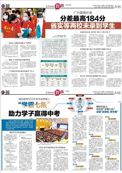 文/羊城晚报记者 蒋隽 实习生 陈文怡 曾颖仪 彭涵 8月24日,广州完成了普通高中的补录,至此2020年普通高中录取正式结束,共有6594名学生搭上高中“末班车”。补录透露出