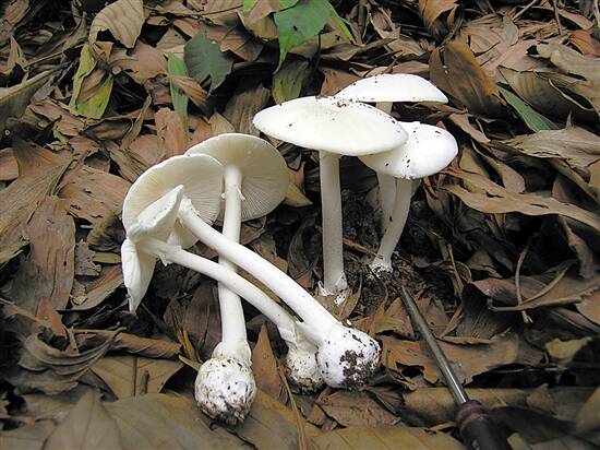 李泰辉向羊城晚报记者表示,在广东,最常见的毒蘑菇是铅绿褶菇(也称青褶伞),而致死事件最多的毒蘑菇是致命鹅膏(白毒伞)。世界上90%以上的毒蘑菇中毒死亡事件都是由鹅膏菌造成的,该菌种的柄底有类似包状的菌托、菌柄上常有菌环。