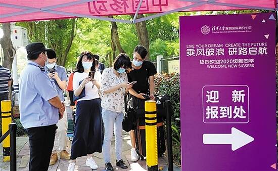 羊城晚报讯 记者沈婷婷,通讯员陈超群、丁超摄影报道:近日,清华大学深圳国际研究生院迎来了一群新面孔,1600余名怀揣梦想的2020级新生成为南国清华的新主人,开启一段新的征程。8月26日,清华大学深圳国际研究生院举行2020级研究生开学典礼,与校本部进行同步视频直播。接下来的两周,还将开展入学教育和强化周系列活动。 受疫情的影响,今年新生入校采用预约制。8月24日至25日两天,新生按照预约时间分批入校。为了减少人员聚集、保障学生身体健康,清华大学深圳国际研究生院在小北门增设了新生专用入口,学生需完成“信息报备-体温检测-消毒-资料收集”等流程后,前往指定地点办理报到手续。同时学院还贴心地为新生准备了摆渡车,方便学生快速地往返报到点和宿舍。海洋学科的许俊杰是24日第一位入校的新生,为了考上清华,他准备了两年,他表示,希望在南国清华好好做科研,争取以后读博深造。 此外,在新生入学前,学院就将报到须知、防疫要求等资料通过新生联系人发给新生。在迎新现场,学院还为师生准备了口罩、消毒液等防疫物资,保障师生的生命健康安全。在CⅡ楼一层的迎新大厅和CI一层的教室,清华大学深圳国际研究生院培养处、研工办、院办、外信办、后勤办的老师和来自各专业的志愿者同学们早早地在各自的岗位上准备就绪,为新生提供贴心和周到的服务。新生们在志愿者的引导下有序地完成资格审查、学费缴纳、住宿办理、户籍迁移、居住登记、领取院衫和学生手册等注册手续。整个迎新现场井然有序,入学程序简洁、高效,指引清晰,所有手续一站式解决。 本次将要报到的研究生新生共1600余名,包括电子信息、资源与环境、能源动力、材料与化工、TBSI交叉学科、Open FIESTA交叉学科、机械、化学、公共管理、生物学、环境科学与工程、土木水利、物流工程与管理、建筑学、金融、艺术等专业。新生们怀着对研究生新生活的期待,畅谈了自己的清华梦与未来规划。