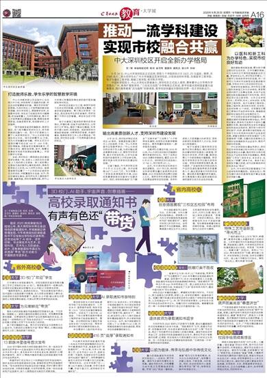 文/图 羊城晚报记者 陈亮 实习生 夏嘉欣 通讯员 漆小萍 孙琛 8月24日,中山大学深圳校区正式启用,首批5个学院师生已于24日、25日进驻。据悉,共2346名大二到大四学生从广州大学城搬迁至深圳校区,分别来自材料学院、生物医学工程学院、电子与通信工程学院、智能工程学院、航空航天学院。 中国科学院院士、中山大学校长罗俊表示,深圳校区正式投入使用,意味着中山大学将办学范围从广州、珠海扩展到深圳,“三校区五校园”办学格局正式形成,是学校面向党和国家重大战略需求、践行高等教育“四为服务”的新体现,是学校加快建设中国特色世界一流大学的新动力。 打造教师乐教、学生乐学的智慧教学环境 中山大学教务部公共实验中心主任陈六平介绍,学校按照“打造教师乐教、学生乐学的智慧教学环境,建设百年校园”的思路,为深圳校区人才培养提供教学条件保障。在办学空间上,课堂教学空间、实验教学空间、学生实习实践空间均大幅提高;在设备配置上,为学校高标准、高水平人才培养提供必要基础支撑,提高设备使用效益,加强资源共享,促进跨学科人才的培养。 “图书馆阅览室将构建教学、阅读功能区,多门类书籍实现学科交叉,将书库和阅读区融为一体,致力于打造能让人静下心来思考的地方。”中山大学图书馆馆长何文平说,馆内目前藏书30万册,均为今年购置的新书籍,明年正式交付使用时藏书将达到150万-200万册。在阶梯教室,则配备有双高清投影机、可升降式讲台、辅助电视等,其中,智慧互联黑板可将板书投屏到投影幕上,并进行数字化存储。 目前,深圳校区一期西园生活区建设有学生宿舍7栋,包括4人间的本科生宿舍、2人间的硕士生宿舍、单人间的博士生宿舍及临时教师公寓和招待所,宿舍均配有独立卫生间,24小时热水供应。每层宿舍楼均设置了一个公共活动区域供学生交流活动,并配置直饮水设备。此外,校区还建有社康站,面向师生员工提供医疗保障、健康筛查、预防保健等功能,把中山大学第七附属医院等优质的医疗服务辐射到深圳校区。 深圳校区饭堂分为三层,每层可容纳千名学生同时就餐,实现空调全覆盖。记者在现场留意到,粤川湘江浙菜系一应俱全,适应各地师生的饮食偏好,同时设置了不同价位的套餐,满足学生的不同需求。 电子与通信工程学院的蒋沛武同学表示,环境优美、设备齐全的新校区,让同学们心旷神怡,增添了集体归属感,也有助于潜心钻研、刻苦奋进。吴波鸿同学对高耸的宿舍楼、光鲜亮丽的食堂、丰盛的餐食、指挥有序的工作人员点赞连连:“我相信,深圳校区会是一个充满希望与奇迹的校区。” 输出高素质创新人才,支持深圳市建设发展 8月26日,深圳经济特区迎来成立40周年,其高速发展正离不开人才的培养、引进。中山大学党委书记陈春声表示:“中山大学深圳校区将不负众望,为深圳输出更多高素质创新人才、高技术科技成果、高水平研发机构,从而为区域和城市发展筑牢人才和创新优势,更好地参与和支持深圳的建设和发展。” 记者了解到,中大深圳校区将于8月31日正式上课,共开设课程247门,618门次,充分保障5个学院各类课程顺利开课,2020级军事课按照本科教学计划要求进行。同时,学校积极推进“五个融合”“五育并举”“三全育人”人才培养体系建构,实现校区间教学管理同质化,教学质量标准相统一,教学服务无差别。 在教师队伍建设方面,2016年以来,中山大学已成功举办四届国际青年学者深圳论坛,吸引了全球近3000名青年学者参加。截至2020年6月23日,深圳校区共引进各类人才749人,现已到岗471人。 此外,中大深圳校区科研活力被迅速激发。2017年以来,深圳校区科研经费总量已连续两年实现翻番。2019年到账科研经费已突破2亿元。国家自然科学基金立项数及经费连续两年实现倍增。各学科领军人才获得重大科研项目、获批创新团队和高层次人才计划,科研实力明显提升。 电子与通信工程学院党总支副书记郑仕勇指出,搬迁深圳校区标志着学院的发展进入新里程,学院在办学空间、师资力量、教研经费三个方面将得到大幅提高。航空航天学院党总支书记温光浩告诉记者,学院迎来崭新发展机遇,将为国家、广东省和深圳市航空航天产业的加速发展培养更多的高素质人才、输出更多高水平的研究成果,建设更多高质量的研究基地,助力粤港澳大湾区国家战略的实施和国家及地方社会经济发展。 以医科和新工科为办学特色,实现市校良好互动 高校要取得突破发展,需与地方建立密切的互动关系,打开双赢的局面,中大与深圳正代表两股强强联合的力量。罗俊校长认为,深圳校区的建立,一方面可以促进各项学科的发展,另一方面可以为深圳市创新驱动发展战略作支撑,市校双方可以形成良好的互动。 按照学校发展规划,深圳校区主要以医科和新型工科为办学特色,紧密契合深圳医疗卫生事业发展、未来产业发展和创新发展战略进行学科布局。深圳校区现已设立医学院、公共卫生学院(深圳)、药学院(深圳)、材料学院、生物医学工程学院、电子与通信工程学院、智能工程学院、航空航天学院、农学院、生态学院等10个学院,还将建设文理医工等相对齐全的学科体系,增强服务国家和区域经济社会发展的实力。 中大自贸区综合研究院副院长、粤港澳发展研究院教授毛艳华指出,深圳校区建设,