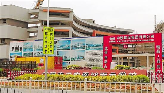 二中南沙天元学校去年尚未完工,需要借其他学校课室开学 图/羊城晚报记者 梁栋贤