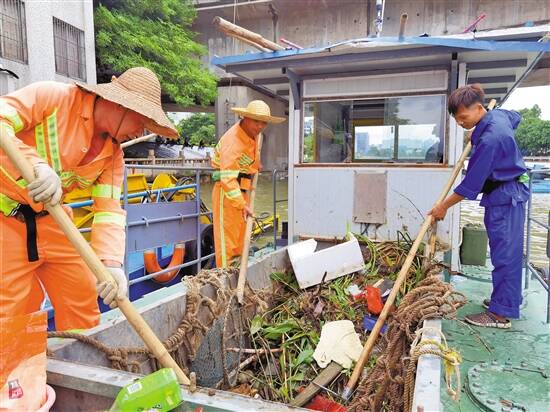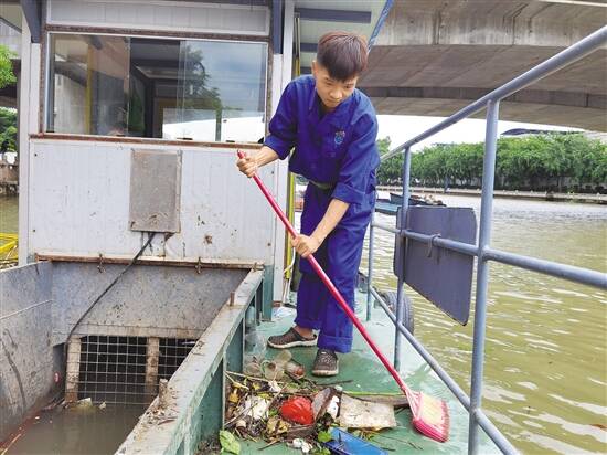 文/图 李斯睿 梁静 陈明 会开船、会游泳、会打捞、会撒网,十八般武艺样样精通,顶着烈日直晒七八个小时打捞水草、浮萍和垃圾,穿着厚厚的胶鞋仍觉得烫脚,这便是禅城区环境卫生养护中心水上环卫保洁员每天的工作日常。9月1日16时40分许,水上环卫保洁员赖文浪完成了一天近8个小时的工作,站在河道保洁站的休息室里,擦着汗吹着衣服说道:“几年下来,其实我也习惯了。一到夏天,衣裤都会被汗水浸湿透,仿佛蒸桑拿,洗了个澡一样。” 赖文浪是名“90后”,负责在汾江河上定期进行日常的河道巡逻清洁工作。他说,这几年虽然打捞起来的仍以生活垃圾居多,但总量一年比一年少。这在他们眼中,也是城市的可爱之处。 不惧酷暑严寒坚守岗位 当天上午10时已是烈日当空,气温高达37摄氏度。这已经是赖文浪当天第二次出船,尽管天气炎热,但他和同事们身上的装备一件不少,救生衣、草帽、打捞网。“最要紧的是备上一瓶水。”赖文浪说。 起伏的河水拍打着清洁船,船身不时轻轻摇晃。只见赖文浪驾驶着保洁船,迎面吹来的热风不断拍打着他的脸颊。他的搭档席崇林和吴茂东则平稳地站在船头两侧,不停地挥动着长长的打捞竿,动作熟练地把河面上的垃圾和水浮莲等水上漂浮物一一挑起,打捞至“船肚”,不放过江面上任何一个角落。期间,他们还得不时注意平衡,工作起来分外费力。“一捧一放”,他们的黝黑的脸、手臂、颈部被晒得发红,脸上的汗水不停往下滴,衣服也全部湿透,但手上的活却丝毫没有停下来。 据了解,禅城区水上环卫队共有四条垃圾打捞船,三人一条船,配备一名驾驶员和两名打捞员,每天从早上7时半忙到傍晚5时,在无处可遮阳的河面上,晒着“日光浴”进行河道清理。赖文浪介绍,水面的温度要高于地面,站在船上就像蒸“桑拿”。 主动请缨赴隔离酒店当测温员 赖文浪个子不高,看上去有点瘦,皮肤黝黑,但眼睛有神,说话铿锵有力。他从2018年开始从事河道保洁工作,“起初很不适应,做这个工作要一直站在船上,夏天太热,冬天又太冷。有时捞垃圾一不小心还会在水中踩空,幸好我们是三人一组,互相有个照应。” 今年初,新冠肺炎疫情突袭。抗击疫情,处处是战场。自疫情发生后,有不少人奋战在战“疫”一线,在自己的岗位上践行社会责任,赖文浪便是当中的一员。他毅然自荐去防疫战疫的前线,在隔离酒店做起了测温员。 在隔离酒店里住着的都是与新冠病毒携带者有过密切接触过的人或是从疫区回来的人员,在这里工作的危险性不言而喻。但面对普通人都畏惧的这一切,赖文浪说:“我们每一个人都希望疫情快些结束,所以我也想为抗疫多做一些事。” 记者体验 眼睛睁不开 感觉呼吸有些困难 在河面上作业到底是一种什么感受?当天采访中,记者穿上厚厚的救生衣,登上了一艘垃圾打捞船,亲身体验了一把河道保洁员的工作。 随着马达声的逐渐增大,船慢慢驶入河道中央。这时候的第一感觉是,眼睛根本睁不开,烈日照在水面上,折射的光晃得眼睛十分难受。不到五分钟,短袖上衣已经被汗水浸透,由于还要穿着救生衣,汗水无法得以蒸发,全被捂在皮肤上,再加上河水的蒸汽,仿佛整个人就在大蒸笼里一样。 不知何时,一阵风吹来,但在高温下完全感觉不到一丝凉意,吹来的风就像热浪般打在人脸上,感觉呼吸都有些困难。在“船肚”处堆放的垃圾散发出的恶臭扑鼻而来。 随后,记者想体验一下站在船上打捞垃圾的感受,但一番操作下来,自己连站都站不稳,更别说打捞垃圾了,鉴于安全,只好作罢。都说“力从地起”,但在河面上,要站稳并完成打捞工作,并没有想象中的简单。 体验了20分钟,船终于靠岸了。记者切身感受到,高温下的河道清洁工真的非常辛苦,他们被称为“水域美容师”一点都不为过。干净的河道,不应只是“水域美容师”的责任,而应是所有人的共同责任。