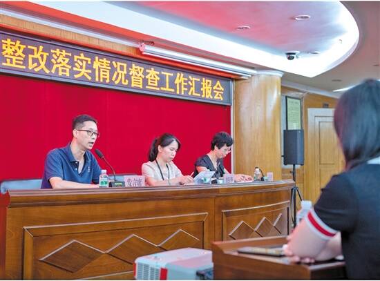镜头1 整改工作坚持镇村同责,压实镇(街)党(工)委的巡察整改主体责任以及对被巡察村(社区)问题整改的督促指导责任,进一步提升巡察整改实效。在伦教街道办召开的村级党组织巡察整改落实情况督查工作汇报会上,伦教街道相关领导、常教社区、仕版村、鸡洲村3个村居的党委书记分别汇报整改情况。第一督查组组长刘珏华“面对面”“点对点”要求整改不彻底的村居提高政治站位、站稳群众立场,切实把问题改彻底、见实效。图为常教社区党委书记作整改情况汇报。 |