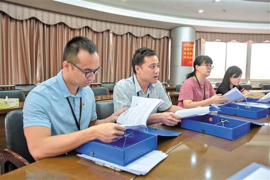 镜头2 督查组把巡察反馈问题的整改方案、整改落实报告、整改落实佐证材料等整改材料作为检查被巡单位整改落实情况的基础性依据,严把整改材料的审核关,确保整改材料真实、全面、准确。图为督查组在检查伦教街道、常教社区、仕版村、鸡洲村的巡察整改落实资料时,就整改细节现场发问。 |