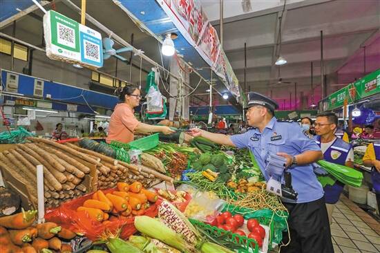 9月2日上午9时许,在澜石黎冲市场内,除了平日的吆喝声和繁忙气息外,这里还多出了几道蓝色身影,同时响起了提醒街坊们注意防骗的提醒声。原来,在公安民警的带领下,黎冲村房东和中国电信员工也当起了志愿者,像其他肉菜商贩一样在市场里摆起了摊,只不过他们在桌面“售卖”的不是肉菜,而是各种各样的预防诈骗、网络安全、禁毒消防等防范宣传小册子。禅城公安还自制了反诈环保购物袋。袋子以绿色为基调,上面印有“兼职刷单骗子最爱 大额返现都是忽悠”等多种反诈标语,简明扼要地向使用者传授防骗的基本法则。 “贷款一定要到正规的金融机构申请,不要相信来历不明的小广告。”一切准备就绪,反诈民警以及志愿者就立即变身“档主”,拿起“大声公”吆喝自家产品——反诈知识,并向过往群众派发相关宣传小册子和反诈环保购物袋。 阵阵的吆喝声,吸引了买菜市民的注意,由于“货物”完全免费,更是吸引了一大群买菜的群众围观。不到1个小时,民警准备的500多个反诈环保袋便被街坊们一扫而空。为了扩大活动影响力,民警还向市场内的商户派发了预留的宣传小册子和反诈环保购物袋,让商户向顾客派发。 据统计,刚过去的8月份,禅城区网贷诈骗、投资诈骗等警情较为多发,受害者有一半以上为中老年人(40-65岁),其中大部分集中在城中村、出租屋、员工宿舍等场所,提升该群体的防骗意识显得尤为重要。 禅城公安介绍,反诈益联盟将根据辖区发生的诈骗警情特点,首次进入村民必去的菜市场,开启“菜市场反诈模式”,简明扼要地向市民传授反诈信息,打通反诈路上的最后100米。接下来,禅城公安还将依托社区民警和村居反诈志愿者,以每周1到2次的频次走进菜市场,争取在人群集中的时段、地点为街坊送上最新的防骗知识。