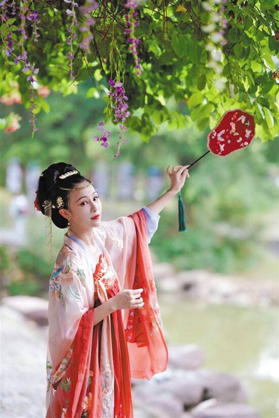 文/图 梅尔 曾几何时,有人穿着汉服游走在城市大街之上,会经常被人误作是奇装异服并指指点点;如今,穿衣风潮的变换之间,要论当下人群的个性化代表性服饰,汉服占据重要席位,更有成为“国风热潮”之势。 在汉服逐渐受大众熟悉的今天,我们知道汉服并不是一种简单的服饰,它所承载的是具有5000年文明的礼仪之邦,象征着中国的灿烂文明和精神气质。汉服的形态更流露出华夏民族和谐端庄与飘逸流畅。在珠海,也有着一群热爱汉服文化的年轻人,他们坚守着复古审美,传承起华夏文明。 从小众步入流行 入坑汉服三年的珠海年轻人边缘,忆起初次穿上汉服走在珠海街道上的时候,身边的路人都会示以奇怪的目光,还会有人问:“你是拍戏吗?还是今天有文艺表演?”而现在,她将汉服当做日常服装穿搭行走,人们早已见怪不怪,而且不少潮流服装店已渗透起汉服元素。 的确,几年前,大众对汉服文化并无深入的概念,甚至还会认为是奇装异类,但就在所有人都觉得汉服处于一个瓶颈期时,它却以意想不到的势头爆发了。随着“西塘汉服文化周”“中华礼乐大会”“中国华服日”“国丝汉服节”等大型活动相继举办,主流新媒体上汉服相关内容日益火爆,“汉服热”悄悄来临。 汉服在年轻人中流行,反映了中国年轻人的审美变化。过去年轻人喜欢模仿国外的流行穿搭,而现在年轻人开始关注代表中国传统文化的服饰,并以之为美和新潮。同时也体现了包容的社会环境,相比于10年前,年轻人更加敢于穿着这些与众不同的服饰走在街头,周围人还会投来欣赏与赞叹。 可以说,大众对穿着多样性的理解更加开放了。从小众圈子的自娱自乐,到在大众文化中形成潮流,汉服融会了年轻范儿和古典气质的对撞感,活跃于互联网、乐于分享的年轻一代是汉服潮流的中坚力量。 近年来,以90后、95后为代表的国潮文化开始盛行,具象表现就是汉服文化的爆发。越来越多的人尤其是年轻人开始对中国传统服饰产生兴趣,并且愿意为之买单。国潮文化的崛起,归根到底源于新一代年轻人对于中国元素的认同。 “我最初喜欢汉服是因为它好看和仙气,当我渐渐了解了汉服的历史后,我更喜欢这种璀璨的文化,同时觉得它就是可以成为我日常生活穿着的一种选择。”边缘告诉笔者,“汉服是文化的象征,如宽袍大袖寓示着宽容,但中缝也警示着我们为人应当正直和中庸。所以我喜欢穿汉服,希望可以将汉文化发扬光大。” 边缘表示,自从爱上汉服文化后,她经常会和有共同爱好的小伙伴们穿起汉服走在珠海的大街小巷,特别是一些节庆的日子更会隆重着装。“比如去圆明新园,或者参加市里举办的民俗活动,我认为都是十分合适穿着端庄的汉服前往。” 汉服的朝代变幻 据边缘介绍,汉服一直是中国流行的服装款式,“汉服”并不单一指汉朝时期的服装,汉服是中国历朝历代的主流服装。“汉服”虽因为“汉朝”而得名,但它是从黄帝“垂衣裳而治”开始,最晚在商朝就已经确定,一直到清朝以前,都是主流服装。中间尽管历经变化,但其最主要的形制,“交领右衽,上衣下裳”的特点却始终没有改变。 秦代汉服主要承前朝影响,以袍为典型服装样式,分为曲裾和直裾两种汉服。这个时期的襦裙样式,一般上襦极短,只到腰间,而裙子很长,下垂至地。襦裙是中国妇女服装中最主要的形式之一。自战国至明朝,前后2000多年,尽管长短宽窄时有变化,但基本形制始终保持着最初的样式。 魏晋时期,风流名士们崇尚自然、超然物外,率真任诞而风流自赏。妇女的服装则一般上身穿衫、袄、襦,下身穿裙子,腰用帛带系扎,款式多为上俭下丰,以宽博为主,其特点为对襟、束腰、衣袖宽大,并在袖口、衣襟、下摆缀有不同色的缘饰,下着条纹间色裙,腰间用一块帛带系扎。衣身部分紧身合体,袖口肥大,裙为多折裥裙,裙长曳地,下摆宽松,从而达到俊俏潇洒的效果。 南北朝时期,受战争和民族大迁徙的影响,服饰产生了巨大变化,男装追求彰显个性的褒衣博带服饰的魏晋风度,女性服装呈现奢靡异常的风貌,整个时兴胡汉交融的新样式。袖口的设计延续魏晋时期的大袖,大袖下托之地间,温文尔雅。上襦下裳,儒在交领的基础上交叉更加低龄,但是增加了襕裆,冠小而衣大,不管是行走还是舞蹈,都显得衣袂飘飘。 唐代丝织品产地遍及全国,无论产量、质量均超过前代,从而为唐代服饰的新颖富丽提供了坚实的物质基础。加之与各国各族人民广泛交往,对各国文化采取广收博采的态度,使之与本国服装融会贯通,因而得以推出无数新奇美妙的冠服。裙子的形式流行高腰束胸,宽摆拖地的样式,既能显露人体结构的曲线美,又能表现一种富丽潇洒的优美风度。 唐王朝灭亡后,宋王朝结束了五代十国的混乱,统一的朝代使社会经济文化发展繁荣,“偃武修文”和“士大夫共治天下”的基本国策,是程朱理学逐渐占据领导地位,人们对美的观念也发生了变化,服饰开始崇尚朴素,重视传统,朴素和理性成为宋朝服饰的基本特征。宋朝汉服一改唐朝汉服的雍容华贵、色彩鲜艳大胆的特点,服饰造型简洁质朴、颜色淡雅、色调单一,追求质朴天然,整个气质显得更自然、更典雅大方。 明太祖朱元璋则根据汉族的传统,“上承周汉,下取唐宋”,重新制定了服饰制度。明制与唐制相比,在于衣裙比例的明显倒置,由上衣短下裳长,逐渐拉长上装,缩短露裙的长度