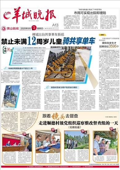 文/图 羊城晚报记者 欧阳志强 通讯员 禅综宣 9月2日,《佛山市禅城区互联网租赁自行车管理办法》(以下简称《办法》)正式发布,《办法》提到,禁止经营者向未满12周岁的儿童提供注册