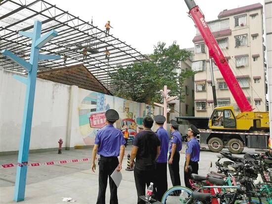 文/图 羊城晚报记者 欧阳志强 通讯员 宋会林 杨倩倩 梁晓 近日,禅城区城管部门正在开展违法建设和既有钢结构建筑物安全隐患集中排查整治专项行动,力争6个月内化解一批重大违法建设和钢结构建筑物安全隐患,一年内基本消除一般违法建设和钢结构建筑物安全隐患。 对人员聚集公共场所进行排查 据区城管部门相关负责人介绍,为深刻吸取3·7”泉州市欣佳酒店坍塌事故和“8·29”山西临汾市襄汾县陶寺乡陈庄村聚仙饭店坍塌事故教训,此次专项行动将重点对酒店、饭馆、商铺、学校、体育馆、农家乐、公园、施工工地、办公场所等人员聚集公共场所,建筑年代长、建设标准低、建筑质量差、主体结构损坏、失修失养严重、超负荷使用、位于地质灾害易发地等存在重大安全风险的公共场所建筑及钢结构建筑物进行“地毯式”排查,并建立违法建筑数据库及台账。 自今年7月24日开始至10月31日结束,全区正在开展“铁拳15号”百日专项治理违法用地、违法建设攻坚行动。 据介绍,此次安全隐患排查整治行动恰逢“铁拳15号”攻坚行动开展期间,对排查出来明显存有较大安全隐患,严重危及百姓生命安全的违法建筑,执法部门将会立即采取强制措施,及时消除安全隐患;对于安全隐患不明显、暂时无法拆除的违法建筑,当事人须提交建筑安全鉴定报告,如果安全鉴定为C、D级危房或拒不提供安全鉴定的,将会采取查封措施,待后续进一步处理。 此外,对于明知存在重大安全隐患的违法建筑物仍要出租牟利的,执法部门将坚决依法依规清理、清拆并追究相关法律责任。 开展“一门式”联合执法 9月3日上午,禅城区城管执法局联合区应急管理局、石湾镇街道综合行政执法办公室开展“一门式”联合执法,对辖区内某隔离酒店楼顶一违法建筑实施拆除,拆除面积约70平方米。 据了解,涉事酒店目前正作为新冠肺炎疫情隔离观察点使用,里面住有100多名被隔离观察人员。8月底,城管执法人员在对全区隔离酒店安全隐患排查时,发现该酒店楼顶存在疑似违法建筑。经现场查看,该建筑墙体为砖混结构,顶部为几块PVC板拼接而成,遇到台风、暴雨等极端恶劣天气时存在极大的安全隐患。执法人员逐要求酒店方提供相关报建资料,但酒店方未能提供,实属违法建设。随后,执法人员责令酒店方立即改正违法行为,消除安全隐患,酒店方表示配合。 当天,区城管、应急、石湾综执办、施工队共计10人开展“一门式”联合执法,对涉事酒店楼顶违法建筑实施拆除。考虑酒店内住有被隔离观察人员,不宜使用大型设备施工,于是主要采用人工作业方式实施拆除,尽量减少噪音影响,切实为做好疫情防控工作提供安全保障。