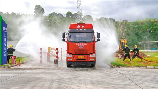 羊城晚报讯 记者唐波、实习生陈佩宜摄影报道:“报告站长,槽车撞坏卸车鹤管,造成液化气管道大量泄漏!”“立即启动应急预案!拉响警报器。各应急小组集合,现在听我指挥!”警报鸣笛,专业人员迅速入场,短短半小时内就解除了危情……9月8日,东莞市城市管理和综合执法局联合大朗镇人民政府在兴华燃料贸易有限公司储配站,举行以“消除事故隐患,筑牢安全防线”为主题的2020年东莞市燃气应急救援演练。 演练分为模拟液化石油气槽车事故和天然气管道事故两个部分。第一部分演练模拟一辆满载液化石油气的槽罐车因司机违规操作撞到卸气鹤管造成液化石油气管道泄漏,引发报警器报警的情况。燃气公司收到警报后立即启动应急预案,关闭罐区阀门切断气源,利用喷雾水枪驱散泄漏的液化石油气,并设置警戒区域,在喷雾水枪的掩护下,对鹤管泄漏处实施带压堵漏,通过专业气体检测仪检测现场可燃气体浓度降到安全范围后,应急解除。 第二部分演练模拟了施工队在大朗镇某路段破土施工过程中不慎将地下天然气管道刺穿导致天然气泄漏,现场有一作业人员受轻伤的情况。事故发生后,现场施工人员立即拨打电话求助。燃气公司、大朗镇应急办、村委会、消防、医护、市燃气救援队、城管、公安、交警、生态环境、供电、自来水公司等部门单位陆续赶赴现场,各司其职,有序开展救援,通过火警探测、警戒隔离、喷洒稀释、无人机侦察、带压堵漏等一系列专业操作后,成功处置燃气泄漏事故。 燃气安全事关千家万户,本次燃气应急救援演练旨在从实战出发,检验全市燃气生产安全事故应急预案的科学性、实用性与可操作性。广东省燃气行业协会专家、高级工程师杨世雏建议,常态化演练是经验的沉淀,一方面要扎实提升实战能力,保障社会公共安全,另一方面加强燃气安全意识,防微杜渐。