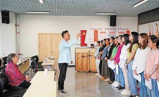 文/图 羊城晚报记者 余晓玲 通讯员 石碣宣 “从前我们在大山里是对着群山唱歌,现在我们搬到新居,我们要把这儿幸福的生活唱给全国人民听。”每天下午三点至六点,只要一有空,从云南昭通市永善县大山深处搬迁至鲁甸县卯家湾的唐成跃、陈安梅夫妇都会来到卯家湾幸福家园农民工合唱团练歌,这也成为了他们固定的业余文化生活。 据悉,卯家湾幸福家园农民工合唱团为云南省的第一支农民工合唱团,由东莞石碣支教老师陈国志组建。 走进卯家湾同唱幸福歌 鲁甸县卯家湾作为昭通市易地扶贫搬迁安置区的示范标杆,有四万余山区贫困户被安置在了这里。走进卯家湾,一幢幢整齐排列的高层楼房映入眼帘,由东莞捐赠的公交车在宽敞的马路上穿梭。 8月24日,东莞石碣支教老师陈国志应邀跟随昭通市总工会来到卯家湾,参加九月底举办的“走进卯家湾,同唱幸福歌”晚会的策划工作。 “从山上迁移下来的移民虽然物质生活条件变好了,但有些思想保守的移民还并不适应新的生活,总想回到山里去。”第一次来到卯家湾的陈国志便发现了这一现象,“看到大多数社区居民都坐在那里无事可做,我就想如果在这里成立一个农民工合唱团,既可以把大家凝聚起来,丰富他们的文化生活,也可让社会各界见识卯家湾的风采,岂不是两全其美的事情。” 在得到了同行领导的认同后,成立合唱团的消息一经发出,第二天,就有上百名卯家湾居民前来报名参加合唱团,其中不乏耄耋老人,风华正茂的青年,年富力强的农民工,还有拖家带口的妇女。为了保证大家的积极性,这个九十余人的合唱团,陈国志并没有进行人员的选拔,凡是喜欢唱歌的都可以参加。 提升搬迁安置点居民凝聚力 “孩子们都出去打工了,没参加合唱团之前下了班都不知道干嘛,现在每天下班后都来这里唱歌,和社区的一些老熟人一起活动很开心。”已年近花甲的钟永安,在担任卯家湾雨露社区的保安之余,把参加合唱团训练当成每天最快乐的事情。 合唱团仅仅成立一个多星期,成员们便已经学会了《思乡曲》《祖国不会忘记》以及陈国志自己作曲的《云南志愿者之歌》等歌曲。 在陈国志的努力下,合唱团很快就积累了人气和名气,这支卯家湾幸福家园农民工合唱团,成为了云南省第一支农民工合唱团。目前,合唱团正加紧排练,为九月底的“走进卯家湾,同唱幸福歌”晚会以及九月中旬的鲁甸县小康杯职工篮球赛开幕式做准备。 “这是一支具有特殊意义的合唱团,所有的成员都是从深山搬迁出来的,希望通过日常的排练及演出,提升整个卯家湾安置点居民的凝聚力,让他们安心在这里住下来,同时也为我的支教生涯画上一个圆满的句号。”陈国志说。