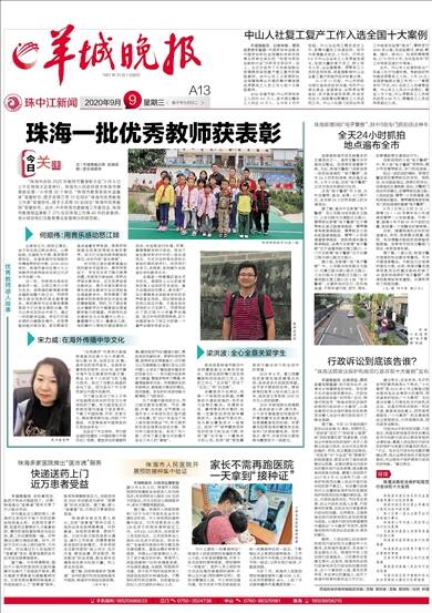文/羊城晚报记者 吴国颂 图/受访者提供 “珠海市庆祝2020年教师节暨表彰大会”9月8日上午在珠海大会堂举行。珠海市人民政府授予珠海市横琴新区第一小学等30个单位“珠海