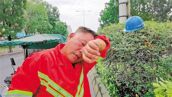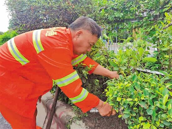 文/图 李斯睿 陈明 梁静 踏入9月,高温持续,佛山市区道路中间的绿化景观仍是郁郁葱葱。这一道道绿意盎然的风景线,离不开绿化养护人的辛勤付出,他们不辞劳苦、挥汗如雨,在烈日下暴晒,用双手细心呵护着这座城市的每一抹绿。 A、树枝把手扎出了血 他不在乎 8、9月份是绿化植物加速生长的好时光,也是绿化养护的有利时机,这意味着,绿化环卫工人必须付出更多的时间和精力进行绿化管养,为城市美容挥洒汗水。 9月8日下午,雨后的塱沙路空气清新,56岁的环卫机动工钱永贤头戴安全帽,骑着电动车来到路中央的绿化带实施修剪、养护作业。2009年,钱永贤从广西老家来到佛山,正好赶上张槎环卫部门招聘,他从此一干就是11年。如今,老钱一家三口已经在佛山安了家。 只见钱永贤挽起衣袖、扛起树苗、拿过锄头,翻新土壤,熟练地栽种下树苗,并清除了绿化带里的杂物和垃圾。虽然是雨后,但气温仍然湿热难耐,加上一身长袖制服,他的脸上早浮上了一层细密的汗珠。“工作嘛,习惯了就好,再辛苦也要坚持。”谈及工作体会,不善言辞的老钱总会轻描淡写地一语带过。 钱永贤一边用双手梳理枝叶一边告诉记者,绿化带看上去干净,但因为汽车尾气、灰尘都沉积在枝叶上,凡是身体碰到的地方,全都会被染黑。如今,经过他的细致修剪,绿化带被修整得美观有序。 由于树叶用铁锨不好铲,钱永贤就用手把树叶抓起来往电动车里装,树枝将他的手背扎出血,他一点也不在乎,直到把枝叶整理干净为止。 在老钱的记忆里,印象最深刻的当属2018年台风“山竹”来袭。按照预案要求,钱永贤与同事第一时间紧急出动,清扫保洁路面,清理各种垃圾、杂物,全面清理折枝断树、残枝烂叶,协助排水工人清理排水口,主动扶正归位指示牌,以最快的速度恢复市容市貌。 “几乎全天没有休息,一堆树枝、树叶装满了压缩车,突然另一旁一棵树倒了下来,路上还是很多(树枝、树叶)没有清理完。”台风过后造成的清扫量是平常的几倍,环卫工人充分发扬连续作战的精神,当天晚上基本完成了路面的清扫和清运工作,保障了市民的出行畅通。钱永贤说,风雨过后,环卫工人就是要打一场道路“清洁仗”。 B、疫情期间消杀防疫 他主动请缨 面对疫情,环卫工人比以往更为仔细地为城市做好清洁防控。疫情期间,在人员紧缺的情况下,钱永贤积极响应号召,把抗击疫情当成自己的职责所在,主动放弃春节休假,积极参与消毒工作。 “春节长假,路上行人比往年少多了,马路上的垃圾也少了,但是我们不能马虎,该清扫到位的地方,一样要扫干净,尤其要重点加强对卫生死角的清理和消毒,疫情防控一刻也不能松懈。”老钱先后在欧C公园,文化广场公园,纯阳垃圾站和东便、江湾,清水区社区进行消杀工作,当张槎环卫接到上级的抗疫任务,钱永贤主动请战,先后为禅城区的20多个社区,村居和公园进行消杀。 随着城市慢慢步入正轨,街道热闹了、店铺开业了,钱永贤的工作变得比原先更忙碌。虽然更忙了,但他心里是高兴的,“看到大家开开心心、城市热热闹闹,我就高兴,辛苦一点没关系,都平安就好。” 从事环卫工作十余年,老钱亲眼目睹了佛山的种种变化,如今市民们的素质有了很大进步,像随意丢弃垃圾、随地吐痰等现象已经少多了,人们对他们也很热情,一些银行和超市也欢迎他们入内休息,这让他很受感动。 “如今佛山正在争创文明城市,环卫部门的责任很重,我们环卫工也都很努力,希望能为创文做一份贡献!”钱永贤坦言,从一点一滴做起,共同维护干净整洁的城市环境。