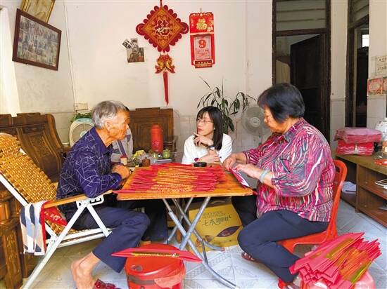 吴珠宝(中)与村民聊家常 曾聪 摄 |