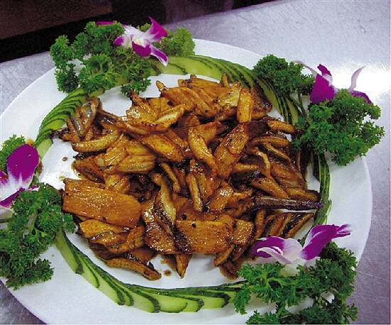 珠海斗门是一个充满文化底蕴且历史悠久的县城。这里有黄沙蚬、禾虫、白蕉海鲈、重壳蟹等因咸淡水交接而赐予的天然美味,也因独特的岭南地域,产生了客家咸茶、艾糍、虾米糍等风味小吃。这些都是斗门独一无二的美食宝藏,让人欲罢不能。 由羊城晚报联合珠海市斗门区文化广电旅游体育局共同举办的系列美食活动——“羊晚带你品味斗门”,它是一场大型文化旅游美食盛宴。曾游历全国大江南北的羊城晚报旅游达人,将以独特的美食品味视野,首站将走入被坊间赞誉为“珠海厨师之乡”的乾务镇,于9月12日晚上8时30分,在“羊城晚报·羊城派”抖音号进行直播。让我们提前看看乾务镇有哪些美食诱惑吧! 金巢琵琶鸭 在乾务镇虎山村,小巷深处院子里的挂钩上,悬着一排排腌制中的鸭子。四散着诱人香气的鸭子在经过烤制后,配上特制的梅果酱,就是一道虎山特有的美味——乾务虎山金巢琵琶鸭。 虎山金巢琵琶鸭的诞生源于百年之前,原料就地取材于田间地头,其制作技艺成为珠海非物质文化遗产。金巢琵琶鸭因形似民间乐器琵琶而得名,如今,其制作技艺已经传至第六代黄仲仁手中。它外脆里嫩,口味甜中有咸,层次分明,肥而不腻还隐约有果木香气。蘸上酸甜的梅果酱还更多了份爽脆的口感。据说,这里用的酱料都是师傅特调,别处根本无处可寻。 技艺虽传承多年,但黄仲仁仍要按照传统明炉手法,将白毛鸭脱毛开膛,用热水滤掉鸭身上的肥油,以保证它的口感不肥腻。用秘制酱料把鸭子全身反复涂抹,放入木盆中腌制,腌制后的琵琶鸭挂钩晾起来,再用糖浆加料酒在鸭身上反复涂均匀,使鸭肉更加酥香。随后转到冷房风干,保持鸭身的新鲜干爽。 烘烤尤为讲究,久一分肉质太柴,早一分尚未入味。只有当鸭在壁厚20厘米的烘炉内,辅以用荔枝木引燃膛火烘烤,方能成就琵琶鸭的口感饱满与脆嫩鲜香。在珠海广阔的西部地区,世代劳作的人们就地取材,在日复一日的尝试中,调配出孕育包括琵琶鸭在内的美味秘方,虽隐于乡村深巷,却滋润着人们因劳作而困倦的味蕾。 姜炒藤鳝 姜炒藤鳝是乾务镇一道历史悠久的传统美食佳肴,声名远播。 上好材料是佳肴的必备因素。藤鳝是生长在虎门咸淡水交汇处的又一美味海鲜,其体长三四十厘米,重仅七八两,全身滑溜如泥鳅,能煲出极致美味。姜是乾务的特产姜子姜,味不辣且稍带甜味。 这道菜的吃法很特别,最好用姜片夹住藤鳝片送入口一同咀嚼,这样姜片的辣味与藤鳝的香味才能融为一体,过油后的子姜去掉了鳝鱼的腥味,同时将鳝鱼本身的鲜味提升到另一个层次。姜的香辣与藤鳝的鲜美巧妙结合,咀嚼间,唇齿生香,回味无穷。当然单吃藤鳝片也别有一番风味,但无论何种吃法,都要趁热吃。 据了解,姜炒藤鳝做法并不难,重要的是火候的掌握。简单的做法更考验厨师的手艺,据说即使在乾务,能做好这道菜的厨师也是少之又少。 豉油王焗花鱼 花鱼,又名泥鱼。说到泥鱼,又不得不提乾务镇这项极富地方特色的一项传统民间渔业活动——装泥鱼。装泥鱼流传至今已超过两百年的历史,乾务镇的诱捕方式就最具特色。这当中以编织补泥鱼的用具最为讲究,特别是泥鱼笼,特殊的人工编制手艺,使装泥鱼这项活动蒙上一股专业而神秘的色彩。 靠山吃山靠水吃水,豉油王焗花鱼是乾务的一道名菜。花鱼先过油,姜、蒜、椒爆香,倒花鱼落锅,以豉油王、生油、蚝油等上盖焗3-5分钟,再落小许芡汁,煎焗至熟,上碟撒葱花即可。 据了解,花鱼具有高蛋白低脂肪、肉质细嫩鲜美等特点,不但营养丰富,而且还具有滋阴壮阳、活血舒筋、止咳等医疗效果,是脍炙人口的佳肴,其营养胜过龙虾、对虾和鳗鲡。 春荠炒烧肉 一位长期研究乾务美食的专家曾这么对笔者说:“乾务美食的出名,不在于食材有多么难得、多么矜贵,而在于对食材的纯熟运用。”据这位美食专家表示,乾务菜的食材大多来自于家常原料,虾米、萝卜丝、春荠等随处可见的食材,往往可以变成美食主角。 这道春荠炒烧肉,从名称来看就只是春荠和烧肉两种食材,但看到出品的时候,笔者也惊呆了:这道菜不仅包含了春荠和烧肉,还有新鲜虾、萝卜头、椰菜等配料。它看起来像一道大杂烩,但吃起来却相当和谐,与东北乱炖有着异曲同工之妙。 虽然材料繁多,但吃起来每种食材却是真正的各司其职。烧肉估计是主角,香香脆脆,连肥膏都十分入味;虾的鲜味也没有遮掩,反而被其他食材调出更深一层的鲜味;萝卜头和春荠起的是调味的作用,同时又肩负着爽口的功能;最后是椰菜,完全把各种味道的肉汁锁在菜叶里,每一口都是精华。 煎鱩饼 对珠三角沿岸独有的贝类——鱩的运用,可谓是乾务镇人民的拿手技艺,所以焗鱩饼这道菜经常出现在乾务镇居民家家户户的饭桌上。 鱩,它是生产在珠江口的一种贝壳类海产品,像是蛤蜊一类的,当地人叫做“鱩”。它肉厚、细嫩、甘肥,白白净净,在退潮后的沙滩上就能拾到,烫熟了吃很鲜美。斗门区的十大名菜里的濑糍水之所以出名,美食家们评论中很大一部分是得缘于鱩干的加入,使濑糍水中的汤味浓厚。 煎鱩饼就是对鱩的另一种做法。据厨师介绍,煎鱩饼的做法十分简单,就是把鱩剁成碎,混入鸡蛋搅匀,再煎至金黄色即可。笔者尝过,果然比虾米煎蛋、沙白蒸蛋更要鲜味,吃下去仿佛尝到了大海的味道,食客也置身于大海中央。