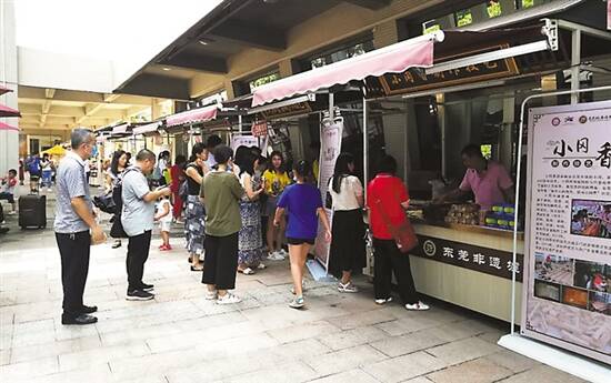羊城晚报讯 记者陈卓栋,通讯员江非遗、谭耀广摄影报道:记者15日从江门市非物质文化遗产保护中心获悉,为促进江门、东莞两地非遗工作的合作发展,日前,由东莞市文化馆、江门市非物质文化遗产保护中心共同举办的“2020年东莞非遗墟市江门专场”在东莞市文化馆举行。江门白沙茅龙笔制作技艺、东艺宫灯制作技艺、金声狮鼓制作技艺、玉石花盆景传统制作、川岛虾酱制作技艺、恩平烧饼、海宴冬蓉制作技艺、罗氏柑普茶制作技艺、小冈香制作技艺等九个非遗项目去“趁墟”。 据悉,江门市本次参加展示、展演、展销的9个项目,涵盖了国家级、省级、市级、区(县)级项目,相关非遗产品,如金声狮鼓、川岛虾酱、茅龙笔和罗氏柑普茶等大受当地市民欢迎,活动期间销售总额近万元。活动不仅极大地宣传了江门的非遗代表性项目,也为传承人提供了一个良好的技艺展示和产品展销平台。 江门市非物质文化遗产保护中心介绍,东莞非遗墟市于2019年升级为“东莞非遗墟市泛粤港澳大湾区城际联盟”,江门为16个成员城市之一。