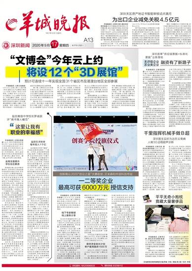 羊城晚报讯 记者王俊报道:9月16日,记者从第十六届中国(深圳)国际文化产业博览交易会(以下简称“文博会”)官方公众号获悉,“文博会”将于10月26日-30日期间以“云上文博会”形式举行,不再设置