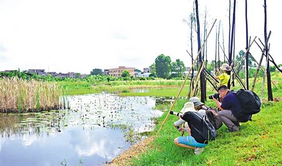通讯员 何敏怡 9月的艳阳下,微风轻拂,蒲草摇曳。东莞市万江街道滘联社区是不少摄影爱好者的创作乐园,因为那里有着东莞仅剩的一处蒲草湿地。近两年来,通过全面实施乡村振兴战略,挖掘蒲草、龙舟等传统文化元素,有着七百多年历史的滘联社区正在悄然发生着变化,美丽村居被注入了更多的文化内涵。 吸引众多摄影爱好者 莞草因其名独特而被外界熟知,但还有一种植物在旧时也被老东莞人视作编织材料,那就是蒲草。“卜筑蓬蒿一径斜,池塘新绿映窗纱。蒲团坐到忘机处,不觉春风度落花。”南明抗清英雄、万江人张家玉诗作《卜居》中描写的蒲团,便是由蒲草编织而成的圆形坐垫。 “蒲草清香、蓬松,用它编织成席、垫,舒适爽快又隔除地气,清醒头脑。”摄影爱好者祁凯俊坦言,东莞年轻一辈对蒲草的认识较少,位于滘联社区正丫湾里面的万江生态湿地公园是全市目前仅剩的蒲草种植地,因此值得去打卡记录。 每逢周末或节假日,滘联社区的蒲草湿地都会吸引众多像祁凯俊这样的摄影爱好者。连片的水生植物郁郁葱葱,蒲草挺拔于池塘中旺盛生长,长焦拍摄、微距特写、双重曝光、空中航拍,大家各自选好角度、摆好机位、对着心头喜好的那株蒲草,频频摁动快门,竞相抓拍最美的一瞬间。 蒲草一身都是“宝” 如果运气好的话,还能遇到村民池塘泛舟,收割蒲草。村民李叔说:“在南方,蒲草也被称为‘水烛’,这是因为它喜欢生长在有水的低洼地或者湿地河边;线条状的植株直立生长,一根根红红的、毛茸茸的花穗看上去很像蜡烛。” 蒲草一身都是“宝”。据李叔介绍,蒲草的白嫩部分和地下茎尖端的幼嫩部分可以食用,味道清爽可口。花粉可入药,称为“蒲黄”,能消炎、止血、利尿;雌花当作“蒲绒”,可填床枕。花序可作切花或干花,水烛的叶片可作编织材料,茎叶纤维可造纸。“旧时,我们村里种植了许多蒲草,村民们经过收割、剖草、晾晒、编织等一系列的环节,把蒲草编织成蒲团、蒲草席等生活用品。蒲团从开始编织到成品,需要两三天的时间,村里面还为收购这些手工品特设了蒲草站。” 挖掘传统文化元素 近两年来,通过全面实施乡村振兴战略,启动美丽幸福村居特色连片示范项目建设,滘联社区的东堤路沿着河岸串起了罗汉松公园、起龙广场、游龙大街、芳草园等十余个景观,成为了村民们的一条“休闲大道”。 滘联在变美的同时,万江街道文化部门和滘联社区也没有忘记去挖掘当地特有的传统文化元素。据社区有关负责人介绍,除了持续保护蒲草,深挖其历史文化底蕴外,滘联社区还在大力传承龙舟和龙狮文化。“枝昌龙舟俱乐部在我们东堤路段河面建了一个龙舟训练基地,从今年3月份开始,俱乐部每天下午开展龙舟训练,由此吸引了众多龙舟‘粉丝’和市民前来观看。随后,又引入万江本土龙狮团队‘联圣堂’进驻驿站,作为醒狮文化的窗口。”
