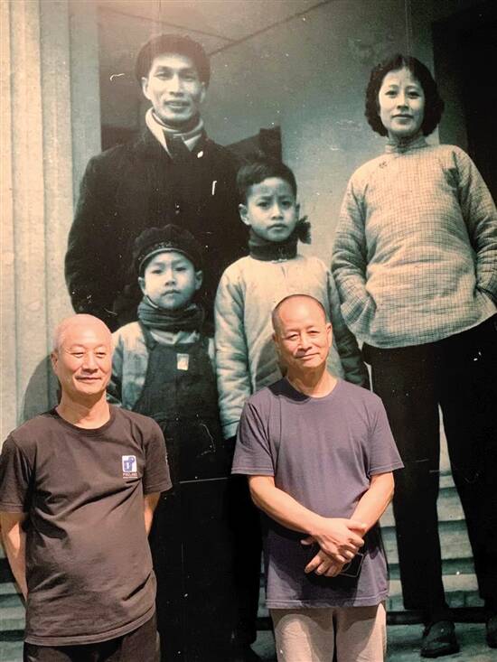曾力、曾鹏在老照片下合影(受访者供图) |