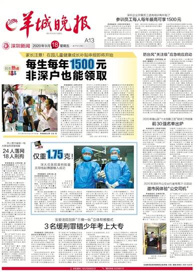 羊城晚报讯 记者沈婷婷报道:17日,记者从深圳市教育局获悉,2020—2021学年在园儿童健康成长补贴申请及资格核验等工作即将开展。据悉,在园儿童健康成长补贴每生每年1500元,在深圳依法设