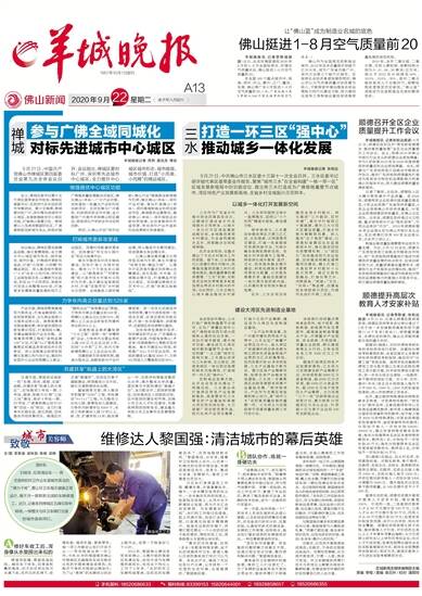 1957年10月1日创刊 佛山新闻 2020年9月22日 星期二 庚子年八月初六 区域新闻全媒体编辑部主编 / 责编 李程 / 美编 陈日升 / 校对 潘丽玲 手机报
