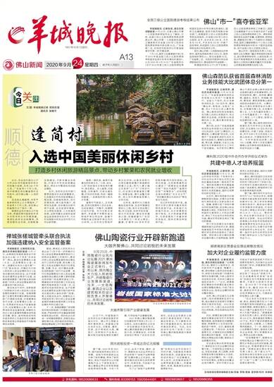 文/图 羊城晚报记者 欧阳志强 通讯员 吴醒万 近日,农业农村部办公厅公布2020年中国美丽休闲乡村的推介结果,共有246个村入选,广东省有8个村入选,其中顺德区杏坛镇逢简