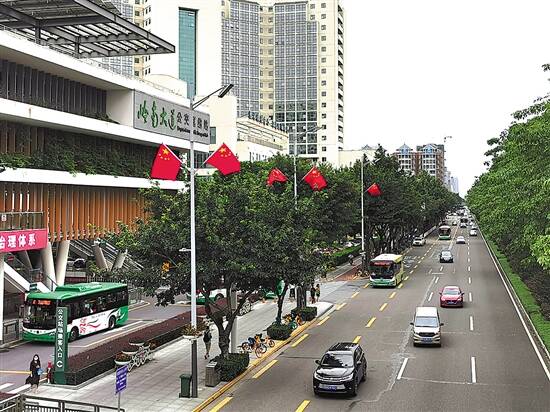 羊城晚报讯 记者欧阳志强、通讯员禅综宣摄影报道:为庆祝新中国成立71周年,禅城区城市管理和综合执法局近期牵头对辖区内岭南大道、季华路、佛山大道等主要道路做好悬挂国旗工作。 9月24日的岭南大道两旁,每隔十多米的路灯灯柱上悬挂两面五星红旗,统一悬挂高度和角度,显得非常整齐、美观,最美“中国红”再现禅城街头。市民陈先生说,停车的时候看到满街的国旗,自豪感、崇敬感油然而生,唤起爱国之心,也充满了节日的气氛。 今年,在悬挂的国旗上附加上一条细细的杆子,“细杆子固定在国旗里面,不影响外观,这样可以避免大风把国旗吹得绕起来”,工作人员介绍。据统计,截至9月23日,岭南大道532面国旗悬挂工作全部完成,季华路(旧彩管厂路段)完成悬挂国旗80面、佛山大道(家博城路段)完成悬挂国旗50面,预计将在27日完成该路段的悬挂工作。