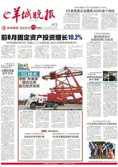 1957年10月1日创刊 深圳新闻 2020年9月25日 星期五 庚子年八月初九 区域新闻全媒体编辑部主编/责编 文俏/ 美编 刘苗 / 校对 杜文杰 报料热线:8328