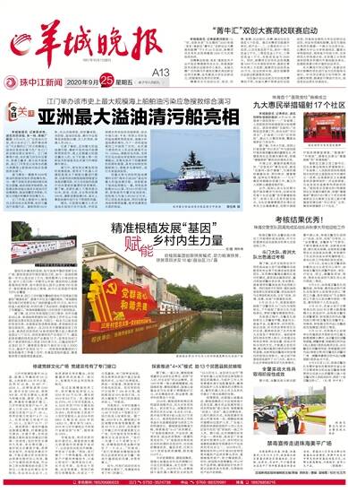 羊城晚报讯 记者陈卓栋,通讯员邓洪福、朱一鸣、谭耀广报道:9月24日,以“应急油化污染,助力生态江门,保护清洁湾区”为主题的江门市大规模海上溢油应急综合演习在广东江门新会银洲湖水域举行。江