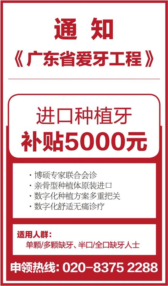 缺牙危害大,补救要及时 很多人觉得缺一两颗牙没什么,然后慢慢地缺失的牙齿会越来越多。广东省口腔医学会口腔种植专委会常委、德伦口腔集团医疗副总裁兼东风总院技术院长徐世同提醒道:“缺牙要及时补救,因为牙齿是互相依靠并排站的,缺了一颗牙,旁边的牙齿会失去依靠而长歪,牙齿长歪以后,进而导致蛀牙、牙周病、牙槽骨萎缩,旁边的牙齿也会逐渐松动、脱落!” 古稀老人种新牙,晚年享口福 79岁的陈伯伯一直饱受缺牙的困扰,全口仅剩寥寥几颗牙齿,脸颊凹陷更显苍老,讲话口齿不清阻碍日常交流,缺牙咀嚼吃饭都成问题,导致身体因营养不良而日渐消瘦。 家人对此十分着急,多方寻医问诊终于来到了德伦口腔看牙。 经过一系列口腔检查及德伦口腔博硕口腔专家的联合诊疗,专家团队为陈伯伯量身定制了数字化无牙颌亲骨即刻修复种植牙方案,配合智能化重建全口新牙。 广东省惠民看牙补贴正式发放 “广东省爱牙工程”是由广东省临床医学学会协办、广东省老年基金会为指导单位,德伦口腔为承办单位及唯一技术指定单位的公益活动,为让更多市民“看好牙,易看牙”,推出系列补贴政策,拨打020-8375 2288申领补贴: ● 看牙福利:71元抵7100元 ● 0元种植牙方案设计【限量100名】 ● 0元数字化口扫检查【限量100名】 ● 0元博硕学位口腔专家挂号费【限量100名】