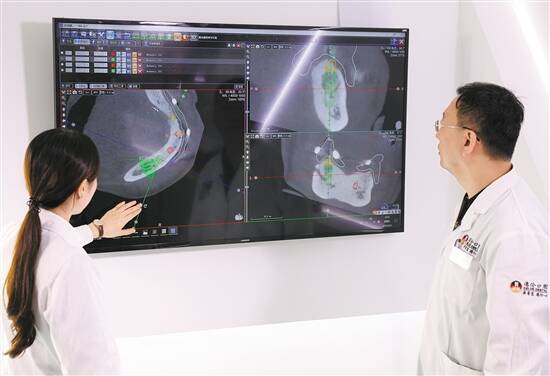 经过一系列口腔检查及德伦口腔博硕口腔专家的联合诊疗,专家团队为陈伯伯量身定制了数字化无牙颌亲骨即刻修复种植牙方案,配合智能化重建全口新牙。