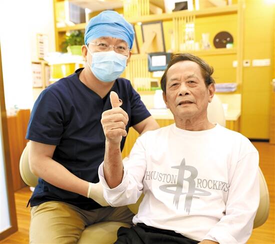 79岁的陈伯伯种完牙后为种植医师点赞