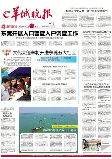 羊城晚报讯 记者余宝珠报道:“大国点名,没你不行”,东莞市人口普查入户调查正式吹响号角。记者12日从东莞市统计局获悉,自10月11日开始至12月10日,广大普查员将走进东莞各家各户进行摸底普查工作