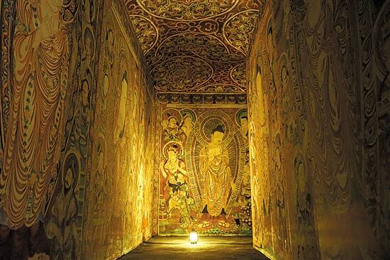 羊城晚报讯 记者郭起摄影报道:几经战乱、盗掘的敦煌壁画在历史的长河里颠沛流离。艺术再造与声光电辅助手段为现代人们打开时光回溯的大门。15日,“千年绮华——从敦煌到高昌宝石壁画沉浸式展览”在罗湖区KKmall开展,纵跨各个时间纬度横跨西域的众多壁画亮相。 展出现场,一条长约10米、三面布满佛教主题壁画的甬道引人注目。观众可手提仿古油灯,踩着沙砾感的路面,感受西域丝路文化之美。 该项目的发起人余亦舟介绍说,因历史上国外探险者毁坏性的掠夺,精美的壁画支离破碎。团队通过海量的文献整理后,对已经被切割并流离在世界各地的壁画图像进行数字还原,最后在众多画师、艺术家的努力之下,西域色彩得以穿越时空,重新出现在世人面前。 此外,展览现场还设有“太虚幻境”等沉浸式展区。艺术家们利用声光电设备为辅助,以壁画中的图像和绚丽色彩为蓝本打造。光影穿透过饰有特殊显影涂层的玻璃纤维,让观众体验不一样的“千年绮华”。