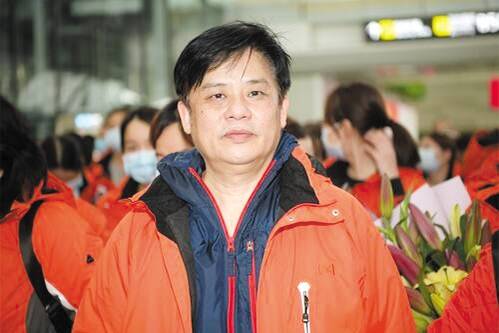 佛山市中医院院长何明丰在机场准备飞往武汉 |