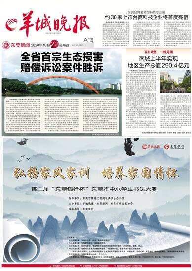 1957年10月1日创刊 东莞新闻 2020年10月22日 星期四 庚子年九月初六 广告热线:0769-21668886 发行热线:0769-22493