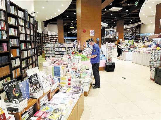 执法人员在书店检查出版物 |