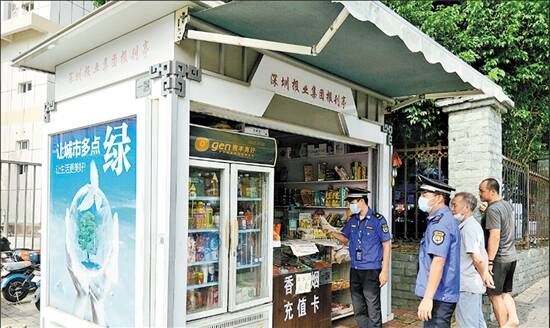 执法人员在报刊亭检查 |