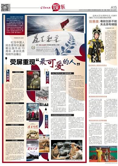羊城晚报记者 龚卫锋 《彭德怀元帅》《破局1950》《毛岸英》《三八线》《为了和平》《英雄儿女》…… 时值中国人民志愿军抗美援朝出国作战70周年,最近的电视荧屏播出了