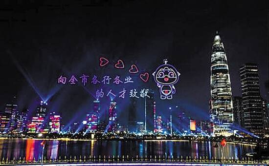 羊城晚报讯 记者李天军摄影报道:11月1日是深圳第四个“人才日”,也是深圳人才公园开园三周年纪念日,南山区推出了包括2020南山国际人才街区建设高峰论坛、“深爱人才馆”开馆、设立5亿元领航天使基金、发布南山人才IP形象“南小π”、开通领航人才服务综合系统、人才专场音乐会及无人机表演等系列精彩活动,为“深圳人才日”献上超级“大礼包”。 11月1日,2020南山国际人才街区建设高峰论坛在深圳人才公园求贤阁举行,论坛上,北京市建筑设计研究院有限公司总建筑师吴晨分享了北京国际人才街区建设的经验,深圳市城市规划设计院院长司马晓提出了南山建设国际人才街区的建议举措,指出南山有基础、有条件、有能力建设好国际人才街区,成为吸引国际人才集聚的高地。 当天下午,蛇口街道、招商街道还被深圳市授予首批“深圳国际人才街区创建点”。其中,招商街道对外发布全国首份街道国际化街区建设白皮书,为全市国际人才街区建设提供南山样本。 此外,深爱人才馆正式开馆,馆内展示有5G应用、人工智能、生物医药、先进制造、大数据和区块链等8大新兴产业,首批共吸引108家企业、160个产品入馆展示,这里将成为人才宣传、成果展示、科普教育以及未来人才培养基地等八大功能。 当天的重头戏在19时30分上演,在深圳人才公园的上空,1101架无人机腾空飞跃,上演一幕幕精彩的“南山之夜”。“深爱人才、圳等您来”“云端科技”“深圳你好”“南小π挥手问好”等依次闪耀,动感活力的无人机表演向各行各业的人才致敬,生动演绎新时代城市科技创新。