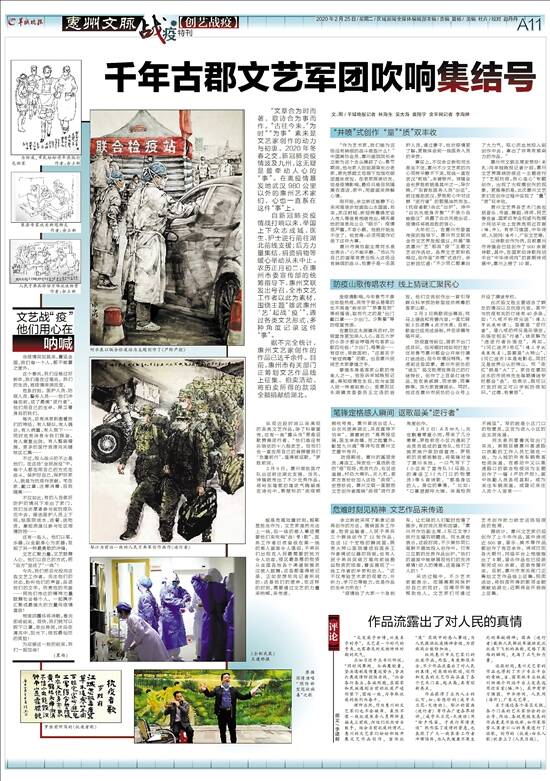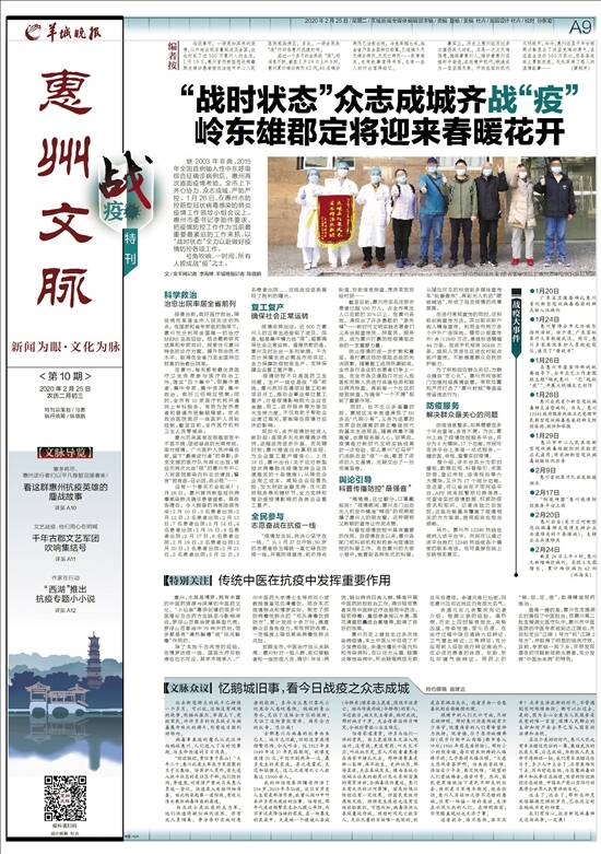 统筹策划/羊城晚报记者 马勇 陈骁鹏 文/羊城晚报记者 陈丽媛 11月8日,新闻工作者迎来第21个记者节。今年遭遇新冠疫情,全市、全国乃至全世界都经历了一场惊心动魄的“战疫”。为表彰新闻工作者在这场战斗中的努力,近日惠州市举办了一系列主题为“铁肩抗疫勇担当,铁笔记录新时代”的记者节活动。其中“惠州抗疫好新闻奖”评选活动集中展示了部分优秀抗疫新闻报道,表彰了一批爱岗敬业的新闻工作者。 抗疫好新闻名单出炉 惠州市新闻工作者协会副秘书长丘思远对记者表示,尽管新闻人笔尖下、镜头中的主角是奋战各行各业的先锋模范,但新闻人的奉献和付出也贯彻始终,他们的文字和图像提振了全市人民抗疫的信心和士气,为打赢疫情防控人民战争、总体战、阻击战凝聚起磅礴力量。 “惠州抗疫好新闻奖”正是对这一批优秀新闻工作者和优秀抗疫报道的集体表彰。记者获悉,此次评选类别分为新闻作品、新闻采编团队、新闻工作者三大类,参评作品多达154篇,参评采编团队18个。 10月27日惠州市新闻工作者协会组织的2020年“惠州抗疫好新闻奖”定评会,评选出优秀作品76件、抗疫优秀采编团队10个、抗疫优秀新闻工作者25名。 值得注意的是,本次评选首次将范围扩大到6家县(区)的新闻单位,基层的付出得到充分肯定。 据丘思远介绍,惠州“抗疫好新闻奖”评委队伍的很有专业性和权威度,10位评委覆盖了专家学者和中高级职称新闻工作者,分别来自市委宣传部、市新闻工作者协会、惠州学院文学与传媒学院等。 惠州学院文学与传媒学院张波教授是此次新闻奖的评委之一。他表示,此次评选抗疫好新闻,可以视为惠州新闻界对自身的工作检验,同时也是对新闻人拼搏精神的集中展示:“这批抗疫主题的新闻作品情节生动,细节饱满,有大量的感人故事和先进典型。” 记者了解到,11月6日,本次记者节“抗疫好新闻奖”表彰大会将在惠州报业传媒集团举行。 本报夺得好新闻一等奖 羊城晚报《惠州文脉》周刊在“惠州抗疫好新闻奖”的评选中斩获佳绩,夺得1个一等奖,2个三等奖。同时,《惠州文脉》编委会、惠州记者站还拿下了优秀采编团队的荣誉,羊城晚报记者李海婵当选抗疫优秀新闻工作者。 值得一提的是,此前羊城晚报《惠州文脉》采编团队还获评广东省新闻战线“走转改”活动先进集体称号。 在“惠州抗疫好新闻奖”定评会上,《惠州文脉》参评作品的内容和版面备受认可。评委认为,内容设有抗疫日记、人物特写、专访等栏目,层次感较强,整体选题策划与编辑思路融为一体,版面生动活泼,抓人眼球。 评委指出,《惠州文脉》的采编理念强调现场感和人文关怀,这种思路在抗疫新闻的策划和采编上表现十分突出。 《惠州文脉》品牌效应凸显 张波对记者表示,《惠州文脉》的尝试是值得肯定的,从策划到选题都非常不错,抓住了惠州的文化渊源和发展脉络。 2019年11月22日,羊城晚报报业集团与惠州市委市政府联手,依托羊城晚报的文化基因优势,推出人文周刊《惠州文脉》。一年来,《惠州文脉》一直高质量践行“新闻为眼,文化为脉”的理念,多角度审视惠州,在深耕文化领域的同时,热切关注经济、时政、民生等题材。这一创新新闻宣传举措,经过一年实践,羊城晚报在惠州本地的影响力越来越大,已形成一个具有鲜明文化特色的媒体品牌。 “利用惠州宽容的媒体环境,羊城晚报及时做出传承与创新,推出《惠州文脉》周刊,很有前瞻性。”张波说,惠州自古是岭东雄郡,历史悠久、人文荟萃。擦亮文化品牌,提升文化自信,对惠州建设发展有着举足轻重的作用,而《惠州文脉》,恰恰承载了推动惠州“大文化”发展的历史使命。 丘思远还与记者分享了他对传统报刊的深厚情怀:“我从中学时期就爱看羊晚,我还记得30多年前羊晚人发表的部分文章,印象那么深,缘于我对羊晚人具有‘人民记者’情怀的感动与崇敬。《惠州文脉》让我感到很熟悉又很新鲜,我感受到了羊晚人对社会的那份不变的深情,又感受到羊晚人在新时代的不断创新精神。