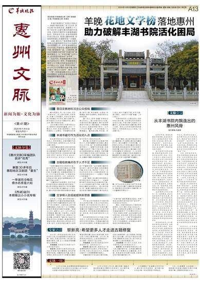 羊晚花地文学榜落地惠州 助力破解丰湖书院活化困局