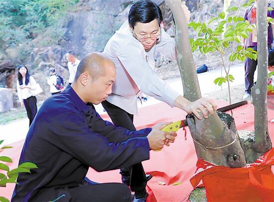 文/图 羊城晚报记者 余晓玲 通讯员 文莞宣 农历小雪日,又是一年莞香采香时。11月22日,2020年文化年历“时令东莞”暨大岭山“莞香文化季”系列活动“东莞香典”在大岭山莞香非物质文化遗产保护园举行,本次活动由东莞市文化馆、东莞市非物质文化遗产保护中心主办,大岭山镇文化服务中心、广东尚正堂集团股份有限公司协办。 据悉,今年东莞香典采用“启动仪式+非遗墟市莞香专场+线上直播带货+莞香产业研讨会”的方式,既传承传播莞香文化、采香技艺,又能促进莞香文化产业发展。接下来,东莞将以莞香文化博物馆为基础,建立莞香文化传承中心。 古法采香展现千年莞香魅力 早上5时,经过拜香神仪式后,莞香制作技艺国家级非遗代表性传承人黄欧带领采香师傅在莞香非遗保护园进行莞香头香的采集。采香现场,黄欧遵循古法,慢慢将莞香树内已结香的树干锯开,再使用工具,缓缓取下白木包裹的莞香原材料,采割了今年的莞香头香。 “传承千年的莞香靠的是东莞人的勤劳和智慧。”黄欧表示,东莞人在长期的劳动中,掌握了断根移植等结香方法,并经过一代又一代香农的传承与改良,逐渐形成了完整且独特的天然结香技艺。 香典仪式在悠长的古琴声和唯美的香道表演中拉开序幕,琴声阵阵,莞香悠悠,一曲大岭山的原创歌曲《女儿香》更是唱出了东莞人对莞香的眷恋和情怀。 今年,现场还有两个特殊仪式——2019年度香王授牌仪式和“非遗在校园”合作签约仪式。为去年采集单株产香最多的“年度香王”颁发2019年度香王原产地认证证书、“年度莞香香王”纪念牌匾。去年单株产香最多的“年度香王”产香1256克。 在香典仪式上,东莞市尚正堂莞香发展有限公司和大岭山中学签订“非遗在校园”合作协议,之后莞香科研团队将在大岭山中学内开设莞香相关课程,此举是非遗进校园的又一崭新成果。今年,东莞非遗进校园将打造“进校园”与“在校园”双轮驱动、相互促进,“中心示范”和“镇街普级”双轨并行、相辅相成的东莞模式,让非遗走进课本、走进家庭、走进同学们的生活中。 此外,尚正堂还与深圳文化产权交易所签订了10000棵沉香树一年期采香权的财产权托管意向合作协议。 而在“头香”拍卖环节中,拍出了16万元的高价,将用于助学活动。一直以来,每年的采香日都会进行助学义拍,至今已经拍得的善款超过百万元。 “互联网+”助力莞香产业发展 莞香制作技艺、寮步香市早已列入国家级非遗名录,清溪传统香制作技艺列入省级非遗名录,受到各界关注。举办香典,是恢复莞香采香日历史文化传统、塑造“莞香祖源、沉香圣地”的重要举措,也是对世代香农坚守传统、辛勤劳作、匠心精神的致敬。 该活动也是大岭山“莞香文化季”的子活动。活动现场开设东莞非遗墟市莞香专场,现场展销莞香系列产品,市民可现场体验传统理香、莞香制作、莞香包装等。 当天仪式还通过网络平台进行现场直播及图片直播。此外,主办方还利用抖音等平台进行直播带货,由“非遗小姐姐”担任主播,线上销售莞香系列产品,既扩大了莞香的销售渠道,又能让更多人了解莞香。 东莞是莞香生产制作、内销出口的重要基地。近年来,东莞市委、市政府重视莞香产业发展,相关镇街、单位和企业勇于探索,创造出累累硕果。本次活动,一方面通过采头香的仪式传承莞香文脉,另一方面通过“互联网+”的思维,聚合莞香消费人群,拉动莞香线上线下销售,促进莞香产业发展。 东莞将建莞香文化传承中心 东莞市文化馆馆长、东莞市非遗保护中心主任黄晓丽表示,接下来,市非遗中心将从四个方面推动莞香文化产业健康发展:一是建立东莞市莞香文化传承中心。以大岭山莞香小镇建设为契机,以东莞莞香文化博物馆为基础,建立一个横跨生物科技、道地药材、文创研发、教育培训、展示展览、研学策划、信息发布等领域的综合性地方特色文化传承中心。二是完善“香博会”运营机制。打造以专业融媒体为平台,线下运营为基础,线上推广为主体的运营模式,突破时间和空间局限,打造“云上香博会”。三是继续推动莞香非遗代表性传承人,坚持跨界融合发展的理念,对接生态、旅游、休闲、医药、创意、艺术等方面的高品质项目,共同开发,迭代推进,实现东莞莞香文化产业发展新跨越。四是继续推动莞香人文精神的艺术转换,对标粤港澳大湾区发展规划纲要的要求,为建设人文湾区、品质东莞,创作一批主题鲜明、形象生动、内涵丰富、思想深刻的文艺作品。