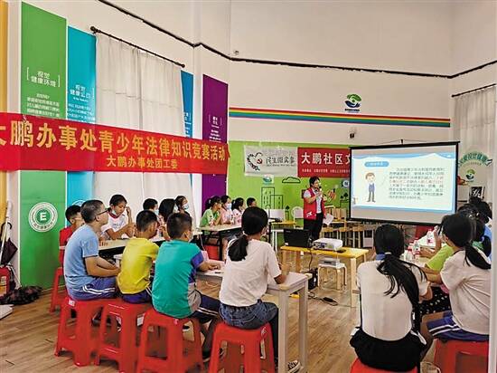 针对日益频发的青少年犯罪问题,大鹏新区大鹏办事处从源头着手,不断创新普法宣传方式,加强法治教育,为青少年打好法治“疫苗”。今年重点开展“关注成长,‘青’力守护”项目,深化推进辖区内预防青少年违法犯罪工作,积极营造青少年健康成长的良好环境。 首先, 大鹏办事处不断探索参与共建共治共享新路径,凝聚青年、义工群体力量,组建大鹏办事处预防青少年违法犯罪普法公益讲师团,为辖区青少年开展公益普法宣讲,以学促知、以知促行,提升服务水平,增强“预青”工作实效。 其次,为全面深入推动宣传教育工作,加强宣传教育引导,预防青少年犯罪,大鹏办事处积极联动各部门、义工队伍、社工等多方力量全方位、多层次开展法制宣传、禁毒、网络安全等宣传活动,通过宣传展板、趣味手工、互动游戏、入户发放传单讲解和线上知识问答及线下知识竞赛等多样形式将相关知识融入其中,寓教于乐,在有效互动中提高青少年的防范和自我保护意识。 第三,积极走访入户,全面排查摸底辖区内重点青少年,做好慰问关爱工作,听取青少年心声,贴近青少年需求,今年以来已开展走访摸查45次。大鹏办事处还通过链接义工、社工、法律援助及心理咨询等资源根据个案需求有针对性地开展一对一专业探访服务,促进青少年健康成长。 接下来,大鹏办事处团工委将从问题和实际出发,问需于青少年,提供精准服务,为青少年的成长成才提供良好的氛围。 (文/图 蒋佳元 龚雯 刘颖 刘丽梅)