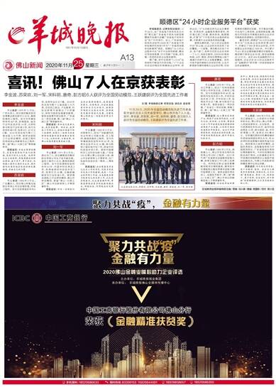 文/图 羊城晚报记者 欧阳志强 通讯员 霍嘉琪 11月24日,2020年全国劳动模范和先进工作者表彰大会在北京人民大会堂举行,佛山市共有7人入选。其中,李金波、苏荣欢、刘一